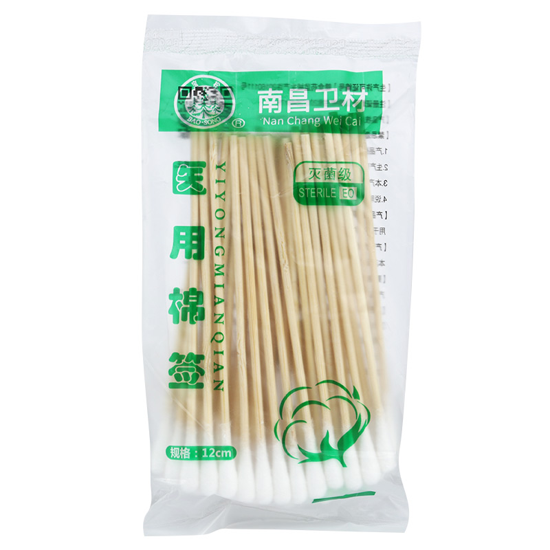 商品名称:宝松 医用棉签规格:12cm/支*1小包生产企业:南昌卫材医疗器械有限公司通用名称:医用棉签温馨提示:请仔细阅读产品说明书或者在医务人员的指导下购买和使用,禁忌内容或者注意事项见说明书。批准文号:赣械注准20172640175
